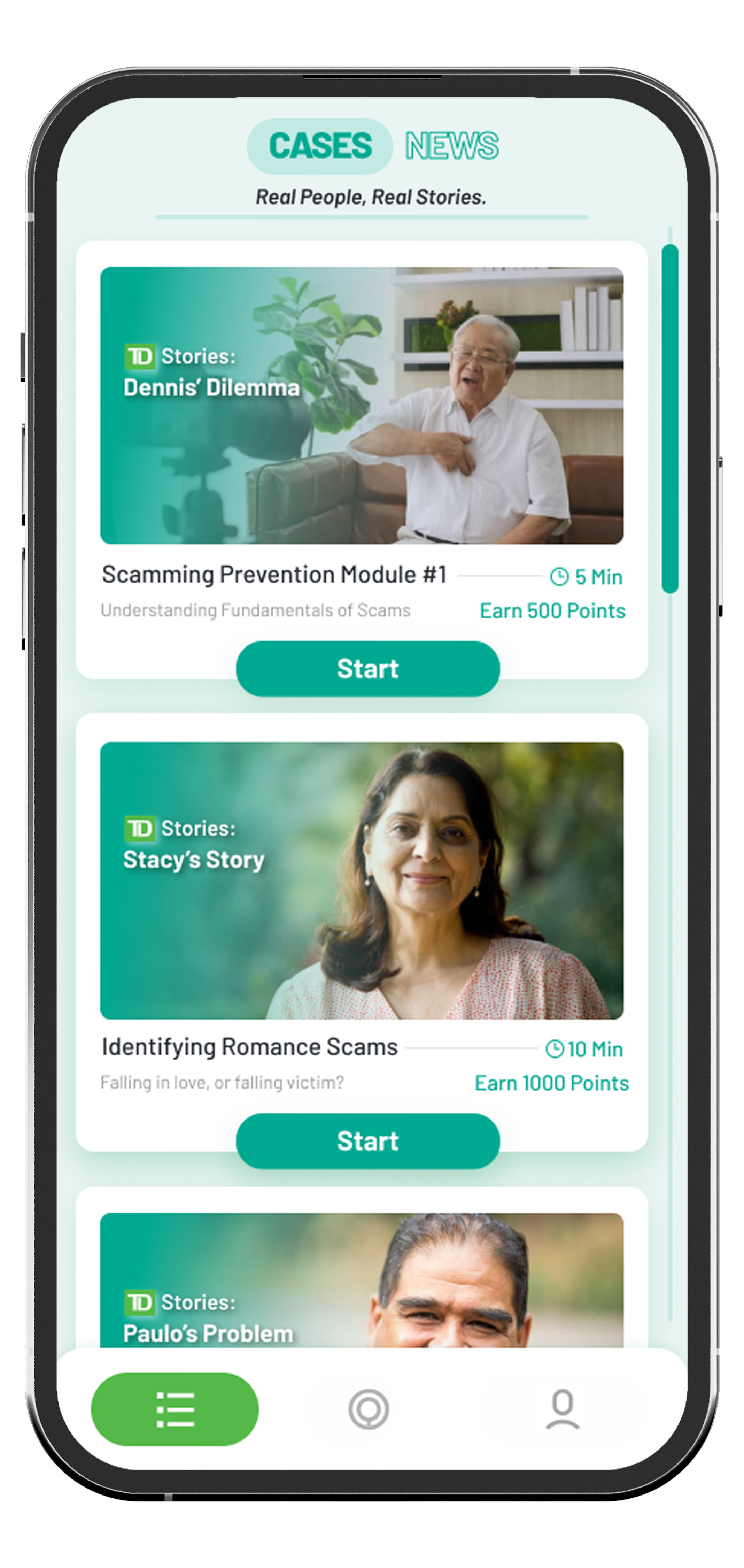 TD SeniorSecure is a Mobile Application that provides up-to-date training on current finance-related scams.